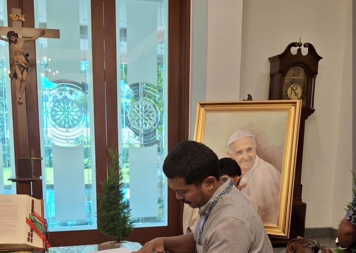 Jacarta – Umat Katolik Berbondong-Bondong Datang Ke Kedutaan Besar (Kedubes) Tahta Suci Vatican, Selasa (22/4). Hal Ittu Dilakukan Utak Memberica Atas Kepergian Pemimpin Umat Katolik, Paus Fransiskus.
